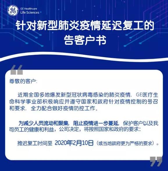 GE生命科學(xué)-針對(duì)新型肺炎疫情延遲復(fù)工的告客戶書