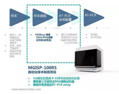 其中,MGISP-100是全球首個(gè)獲得臨床二類醫(yī)療器械證的自動(dòng)化樣本制備系統(tǒng),可提取8-32樣本/40-80分鐘,每次可減少醫(yī)務(wù)人員約2個(gè)小時(shí)的手工操作時(shí)間,適用中小型實(shí)驗(yàn)室。