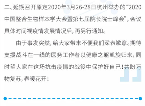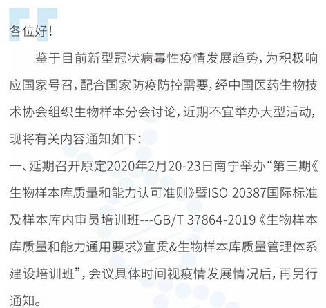 2020中國整合生物樣本學(xué)大會(huì)延期公告