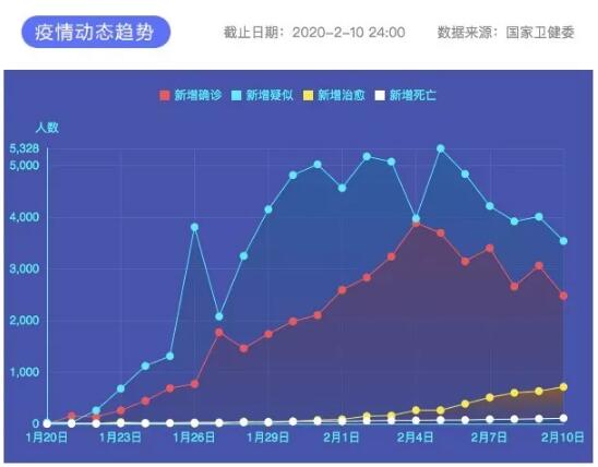 全國疫情動態(tài)趨勢(截至2020年2月10日24時,圖片來源新華網(wǎng))