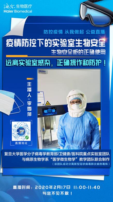 為了更好地保障醫(yī)護(hù)人員的生命安全,復(fù)旦大學(xué)醫(yī)學(xué)分子病毒學(xué)教育部/衛(wèi)健委/醫(yī)科院重點實驗室團(tuán)隊、病原生物學(xué)系“醫(yī)學(xué)微生物學(xué)”教學(xué)團(tuán)隊,以及海爾生物醫(yī)療聯(lián)合,率先發(fā)起了“疫情防控下的實驗室生物安全”公益直播課堂。從生物安全柜的正確安裝和實驗室簡便測試法、生物安全柜操作的規(guī)范程序等方面進(jìn)行系統(tǒng)的講解。