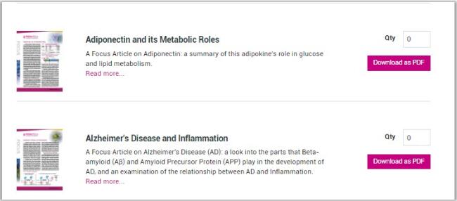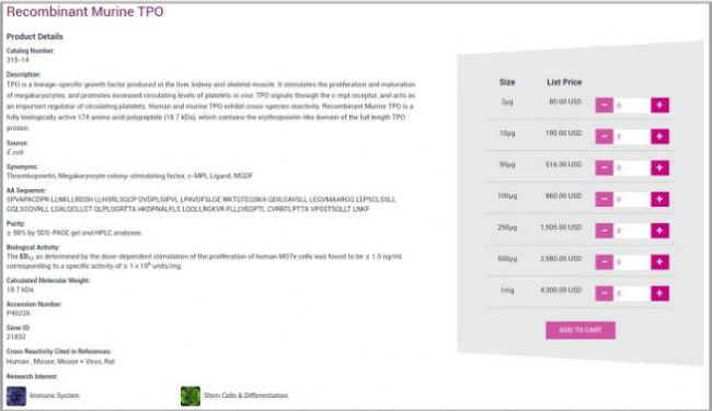 4:在文獻(xiàn)頁(yè)面的脂聯(lián)素和阿爾茨海默病焦點(diǎn)文章中增加了“Read More”鏈接。這些“Read More”鏈接會(huì)將您帶到改進(jìn)我們網(wǎng)站搜索引擎優(yōu)化的新內(nèi)容的頁(yè)面: ![]() 5:在GMP產(chǎn)品頁(yè)面,添加了新字段:Accession#, GeneID, and Synonyms: ![]() 6:在所有的產(chǎn)品頁(yè)面上,我們更新了先前標(biāo)記為“Cross Reactivity”的字段,使之成為“Cross Reactivity Cited in References”,以便更好地定義這些物種的來(lái)源。 ![]() 7:最后,用戶感言頁(yè)面更新了新的客戶圖片和評(píng)論: ![]() |