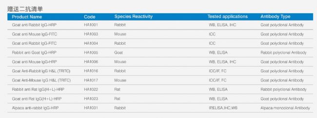 3. 參加買一贈(zèng)二活動(dòng)的內(nèi)參和二抗僅限清單所列出的抗體;