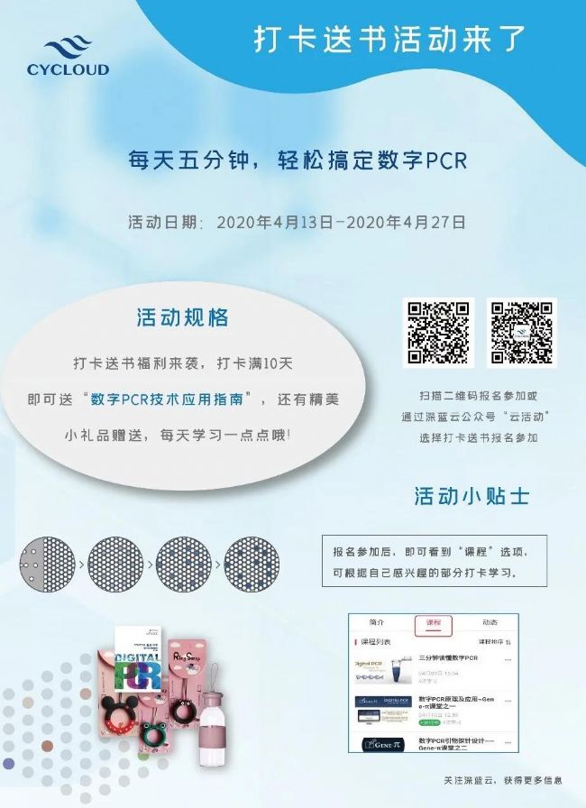 如果您想了解更多有關(guān)數(shù)字PCR的知識,快來參加深藍云數(shù)字PCR知識打卡吧! 每一關(guān)都有您關(guān)注的重點,學(xué)到知識的同時還有精美小禮品贈送哦。