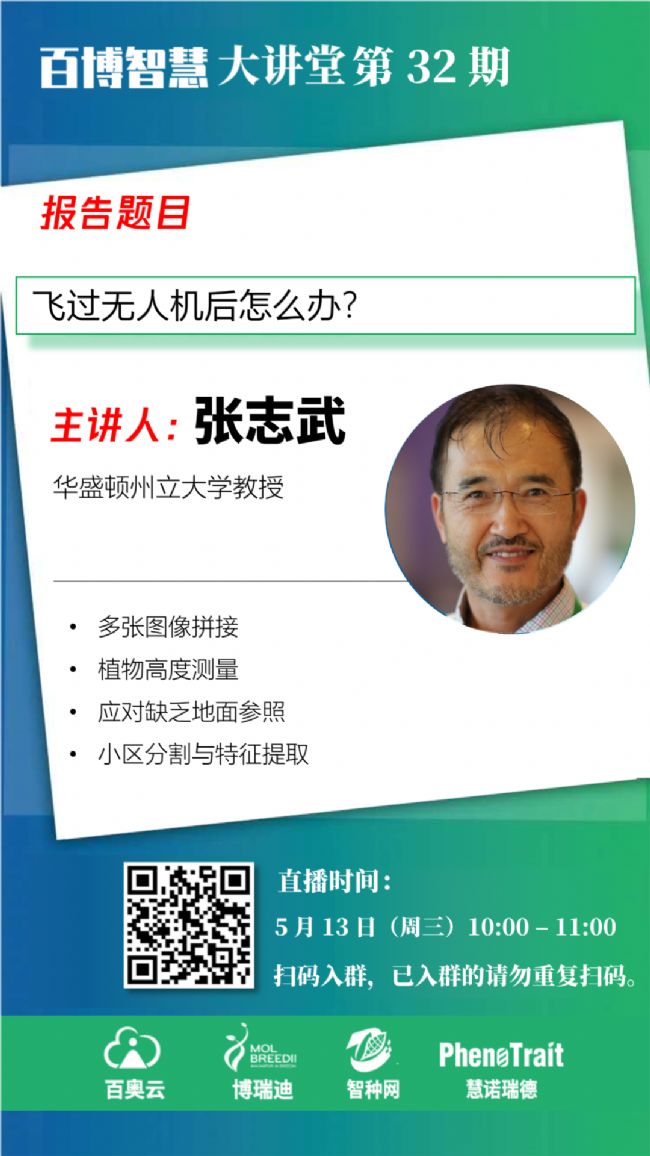 百博智慧大講堂自3月5日開播以來,短時間內(nèi)引起強烈關(guān)注。在已結(jié)束的直播中,哈佛大學(xué)/北京大學(xué)林澤川博士、中國農(nóng)業(yè)科學(xué)院作物科學(xué)研究所肖永貴博士、東北農(nóng)業(yè)大學(xué)陳慶山教授、金玉良種劉定富董事長、明尼蘇達大學(xué)梁智凱博士、丹佛斯植物科學(xué)中心李茂博士、中國農(nóng)業(yè)科學(xué)院作物科學(xué)研究所金秀良研究員、北京農(nóng)林科學(xué)院溫常龍博士、華中農(nóng)業(yè)大學(xué)楊萬能教授、百博智慧大講堂四位創(chuàng)始人王冰冰/張嘉楠/葉劍/韓志國、北京農(nóng)林科學(xué)院趙久然研究員、南京農(nóng)業(yè)大學(xué)/法國農(nóng)業(yè)科學(xué)院劉守陽博士、中國科學(xué)院植物生理生態(tài)研究所宋青峰博士、澳大利亞科學(xué)院鄭邦友博士、著名農(nóng)業(yè)評論員張鑫先生、法國農(nóng)業(yè)科學(xué)院Christophe Salon教授、中國科學(xué)院遺傳與發(fā)育生物學(xué)研究所農(nóng)業(yè)資源研究中心劉秀位研究員、內(nèi)布拉斯加大學(xué)林肯分校葛玉峰副教授、中國農(nóng)業(yè)科學(xué)院作物科學(xué)研究所徐建龍研究員、青島清原農(nóng)冠集團研發(fā)總監(jiān)劉丙新先生、北京農(nóng)業(yè)信息技術(shù)研究中心張穎博士、中國農(nóng)業(yè)大學(xué)馬韞韜博士、山東省農(nóng)業(yè)科學(xué)院孫琦博士、中國科學(xué)院遺傳與發(fā)育生物學(xué)研究所田志喜研究員、華南農(nóng)業(yè)大學(xué)郭濤教授、武漢大學(xué)吳賢婷博士、云南省農(nóng)業(yè)科學(xué)院番興明研究員、中國農(nóng)業(yè)科學(xué)院作物科學(xué)研究所徐云碧研究員、華中農(nóng)業(yè)大學(xué)張建博士、明尼蘇達大學(xué)張峰博士、清華大學(xué)崔偉博士等帶來了31場精彩的報告。
