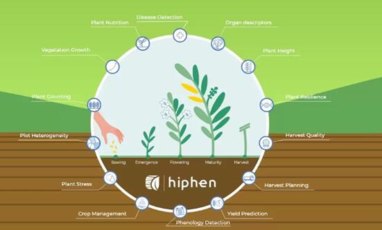 Hiphen公司工程師和科學(xué)家創(chuàng)造了遠(yuǎn)程(近地)遙感方案,用于鑒別多維度植物健康以及發(fā)育,涵蓋了從微田塊到大規(guī)模生產(chǎn)場(chǎng)地。