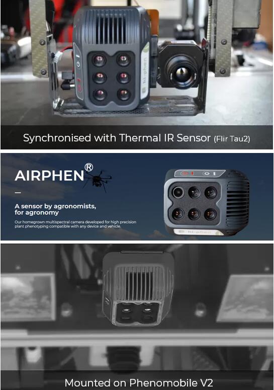 該模塊可作為多功能核心模塊,搭載正在無人機(jī)、便攜式成像系統(tǒng)、無人車等各個(gè)系統(tǒng)上。Airphen多光譜相機(jī)可對(duì)數(shù)十個(gè)植被指數(shù)和植物表型進(jìn)行監(jiān)測(cè),同時(shí)可同步RGB和近紅外成像相機(jī),將其分別變?yōu)榈?、8波段。