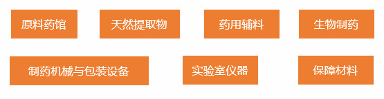 制藥原料、藥用輔料、天然提取物、制劑與藥物研發(fā)、制藥機(jī)械與包裝設(shè)備、實(shí)驗(yàn)室儀器、包裝材料、環(huán)保與潔凈。