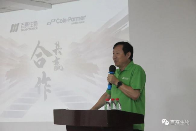 會議開始是由Cole-Parmer中國總經(jīng)理吳斌先生為大家講話,他通過“情”、“理”、“法”三個字,表現(xiàn)出兩家公司的合作意愿是非常強烈的,可以創(chuàng)造出更好的未來,他表示對彼此的合作前景非?春。
