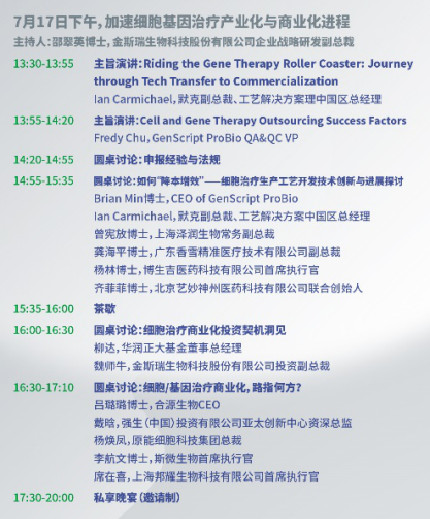 金斯瑞細胞基因治療產(chǎn)業(yè)發(fā)展與合作論壇議程公開丨文末領福利