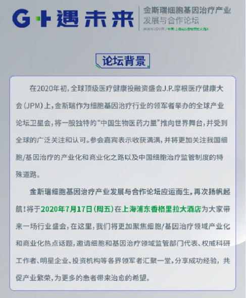 金斯瑞細(xì)胞基因治療產(chǎn)業(yè)發(fā)展與合作論壇倒計(jì)時10天