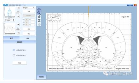設(shè)置Bregma/Lambda點(diǎn)后,電腦界面顯示腦圖及探針?biāo)谖恢茫瑢?shí)時(shí)顯示移動(dòng)過(guò)程。