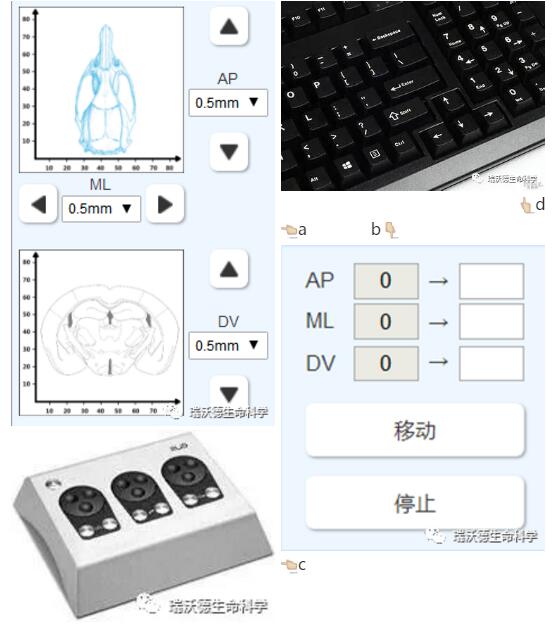自動(dòng)化、智能化更進(jìn)一步。通過(guò)電腦軟件精確控制步進(jìn)電機(jī),驅(qū)動(dòng)定位儀操作臂移動(dòng)。軟件內(nèi)置大小鼠腦圖譜和常用實(shí)驗(yàn)任務(wù)模塊,可自動(dòng)化運(yùn)行,減少人為操作帶來(lái)的誤差,能更方便、直觀地進(jìn)行腦立體定位。同時(shí)配備微操,滿足更靈活的操作需求。