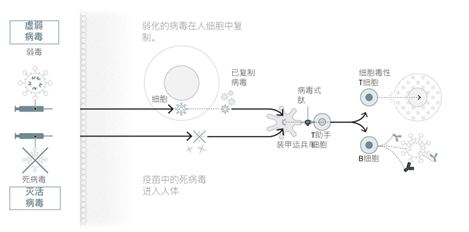 疫苗通過激活人體的免疫系統(tǒng)來識別和阻止病毒而起作用。每種疫苗技術(shù)都遵循這一基本原理。疫苗旨在激活免疫系統(tǒng)的T細(xì)胞,后者負(fù)責(zé)監(jiān)測病毒的存在。他們指示B細(xì)胞創(chuàng)建阻止病毒復(fù)制的抗體,并指示T殺傷細(xì)胞破壞感染的細(xì)胞。一些疫苗可能僅激活這種免疫應(yīng)答的一部分。