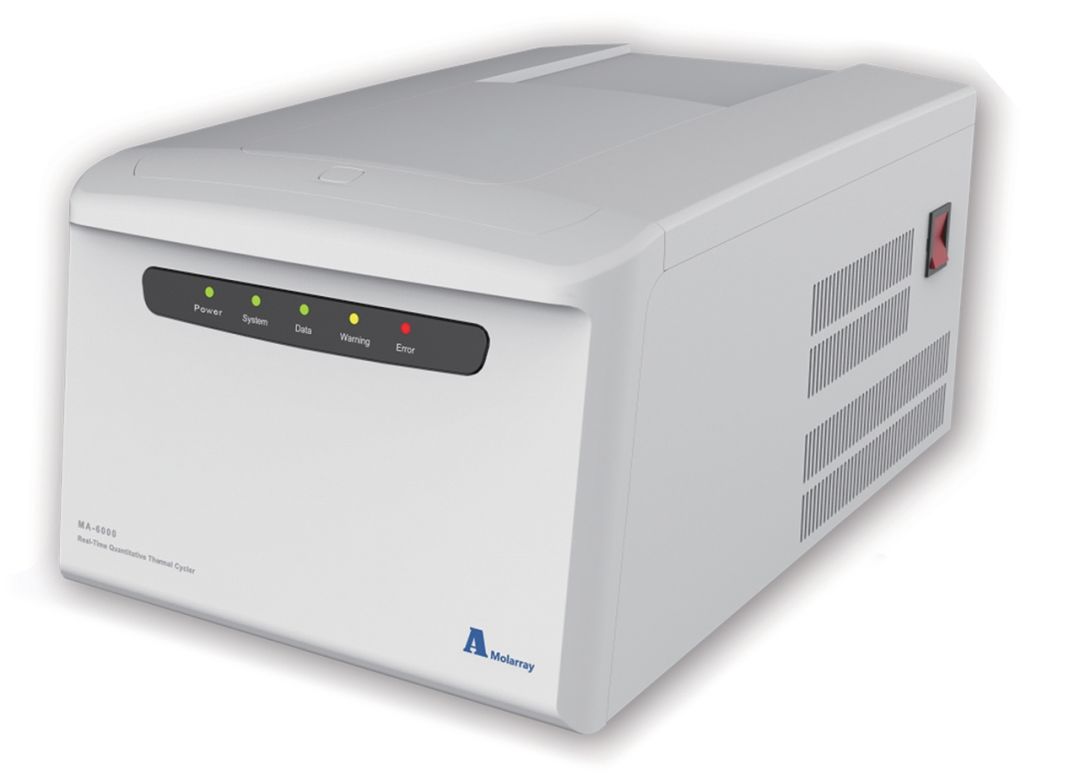 MA-6000型采用高品質(zhì)Marlow半導(dǎo)體熱電模塊、結(jié)合德國高端PT1000溫度傳感器以及電性電阻加熱補(bǔ)償邊緣的溫度控制模式,通過進(jìn)口耐高溫專業(yè)光纖將96個(gè)樣品孔內(nèi)的熒光信號(hào)實(shí)時(shí)傳輸?shù)礁咝旁氡鹊?20℃冷態(tài)低溫CCD進(jìn)行實(shí)時(shí)檢測;是一款具有完全自主知識(shí)產(chǎn)權(quán)的開放式設(shè)計(jì)的全自動(dòng)熒光定量PCR儀。