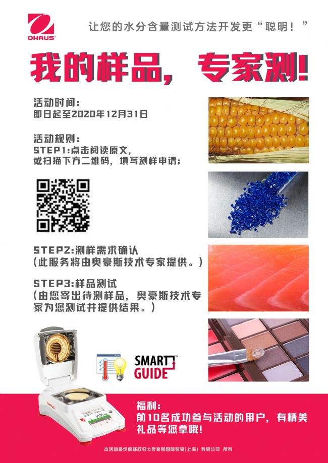 您只需掃描二維碼,填寫測樣申請并提供待測樣品,即可享受奧豪斯免費測樣服務(wù)。