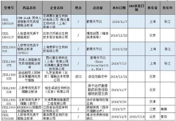 截止7月上旬國內(nèi)獲批臨床的干細胞產(chǎn)品