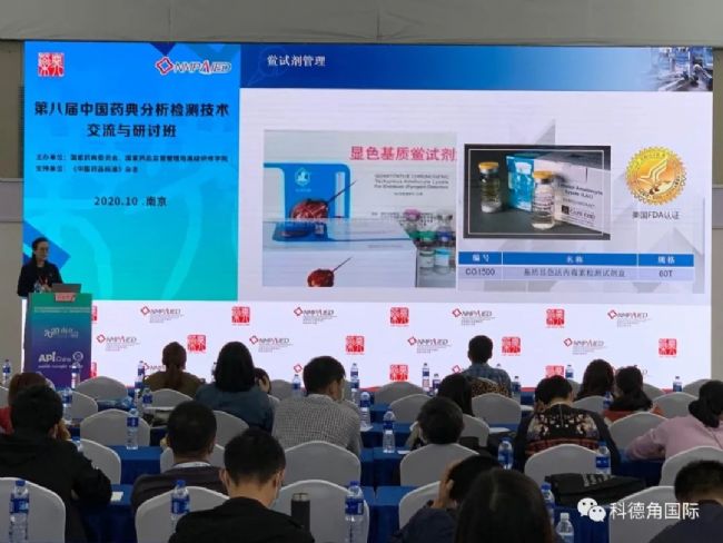 2020年10月14~16日第85屆API China&第二十四屆CHINA-PHARM在南京舉行,科德角很榮幸參加了此次醫(yī)藥行業(yè)的盛會,并參加了展會中由國家藥典委員會和國家藥品監(jiān)督管理局高級研修學(xué)院聯(lián)合主辦的 “第八屆中國藥典分析檢測技術(shù)交流與研討班”,科德角很榮幸成為此次藥典委員會推薦的內(nèi)毒素檢驗法開發(fā)企業(yè),ACC鱟試劑和定量檢測系統(tǒng)成為此次會議推薦的產(chǎn)品。