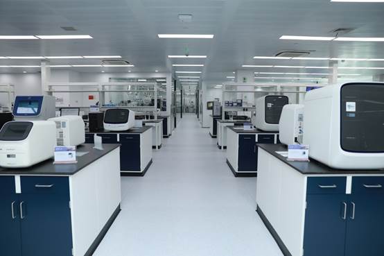 位于體驗中心3層的生命探索中心里陣列了眾多生命科學研究的關鍵“重器”,包括擁有智能雙磁頭的KingFisher Apex核酸提取系統(tǒng);被稱為“測序標配”Qubit系列核酸定量儀;可遠程控制變溫快速的Veriti Pro PCR儀;配備聲波聚焦技術的Attune Nxt流式細胞儀(上樣速度提高10倍);能夠動態(tài)觀測活細胞的Evos M7000顯微成像儀;測序金標準的3500 Dx和SeqStudio基因分析儀(一代測序儀)以及已獲得歐盟、美國和中國認證,在遺傳疾病分析領域應用廣泛且的GeneChipSystem3000 Dx2基因芯片平臺等等。同時也配備了整套的輔助工具和設備,包括專門的樣品儲存室、離心室以及樣品制備區(qū)等,堪稱全流程的前沿研究交流平臺。