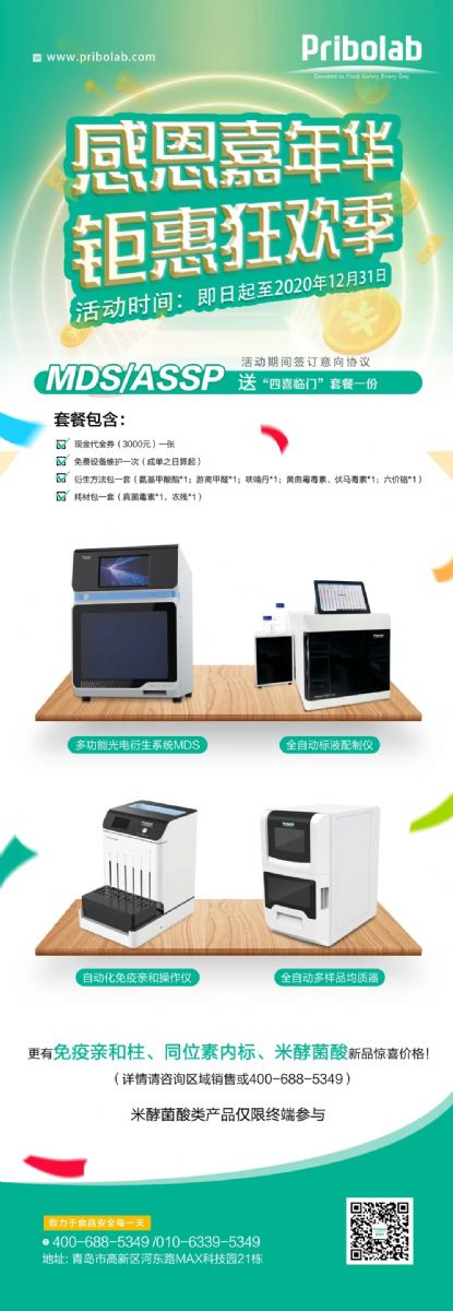 為了答謝新老客戶一直以來的支持,Pribolab于雙十一到來之際為大家獻(xiàn)上鉅惠!凡是購買普瑞邦儀器送“四喜臨門”套餐一份!親和柱、內(nèi)標(biāo)、米酵菌酸等更有神秘驚喜!年度最大優(yōu)惠,買到就是賺到!