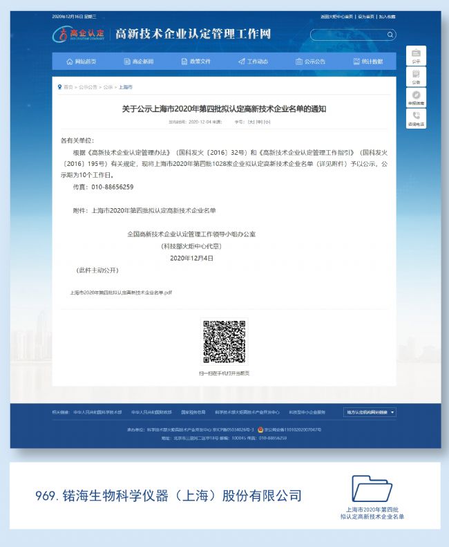 在我國(guó),高新技術(shù)企業(yè)一般是指在國(guó)家頒布的《國(guó)家重點(diǎn)支持的高新技術(shù)領(lǐng)域》范圍內(nèi),持續(xù)進(jìn)行研究開(kāi)發(fā)與技術(shù)成果轉(zhuǎn)化,形成企業(yè)核心自主知識(shí)產(chǎn)權(quán),并以此為基礎(chǔ)開(kāi)展經(jīng)營(yíng)活動(dòng)的居民企業(yè),是知識(shí)密集、技術(shù)密集的經(jīng)濟(jì)實(shí)體。锘海生物憑借人才、創(chuàng)新和設(shè)備的優(yōu)勢(shì)順利通過(guò)“上海市2020年第四批高新技術(shù)企業(yè)”認(rèn)定。