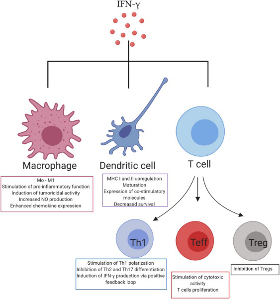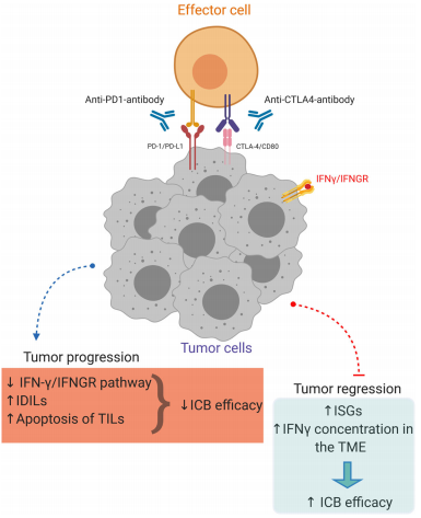 IFN-γ有助于提高腫瘤的免疫治療效果。 抗PD-1抗體和抗CTLA4抗體在癌癥治療中的功效可通過IFN-γ的調(diào)控而改善或減弱。