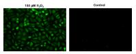 ![]() 圖2.使用Cell Meter 細(xì)胞內(nèi)熒光過氧化氫檢測試劑盒(Cat#11503)在HeLa細(xì)胞中細(xì)胞內(nèi)過氧化氫的熒光圖像。在37℃下用(左)或不用(右)100 µM過氧化氫處理HeLa細(xì)胞90分鐘。 |