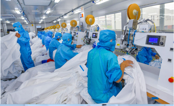 董事長(zhǎng)袁建華,在上海敲鐘返回廣州后就一頭扎進(jìn)防護(hù)口罩和防護(hù)服生產(chǎn)車(chē)間,親自?huà)鞄洠瑤ьI(lǐng)取消休假返回崗位的員工,緊急重啟原計(jì)劃關(guān)停的口罩生產(chǎn)線(xiàn),三班倒24小時(shí)運(yùn)作,全力提高產(chǎn)能,保障疫情防控物資供應(yīng)。