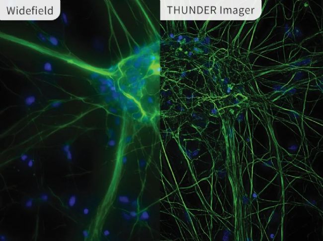 圖1 神經(jīng)上皮細(xì)胞 普通款場顯微鏡與THUNDER Imager成像對比