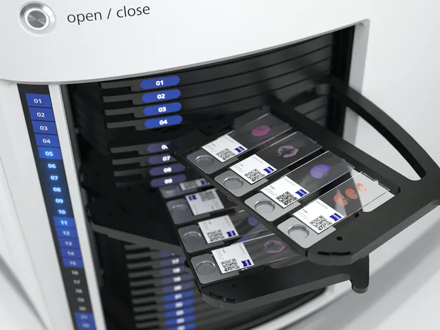 蔡司Axioscan 7可一次性對100張相似樣品或混合多種應用的樣品進行數(shù)字化采集