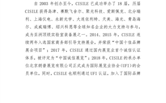 中國(guó)國(guó)際科學(xué)儀器及實(shí)驗(yàn)室裝備展覽會(huì)(以下簡(jiǎn)稱CISILE),創(chuàng)立于2003年,歷經(jīng)19年的成長(zhǎng)與開拓,目前已成為我國(guó)科學(xué)儀器領(lǐng)域別具規(guī)格和影響力的專業(yè)展會(huì)之一。