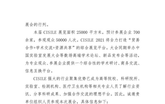 第十九屆中國(guó)國(guó)際科學(xué)儀器及實(shí)驗(yàn)室裝備展覽會(huì)(CISILE2021)將于