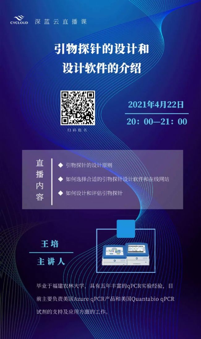 引物探針的設(shè)計很大程度上決定了PCR實驗的難易程度,那么該如何設(shè)計引物探針呢?現(xiàn)有的引物設(shè)計軟件和網(wǎng)站又該怎么使用呢?所有的答案都在“引物探針的設(shè)計和設(shè)計軟件的介紹”的直播課中,讓北京深藍(lán)云生物科技有限公司來為您答疑解惑吧!