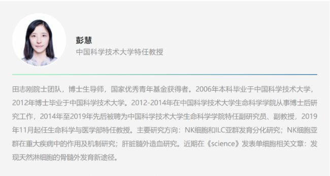 | 13:30-14:00 | 肝臟駐留 NK 細(xì)胞 /ILC1 發(fā)育分化及機(jī)制 | 彭慧 特任教授 中國(guó)科技大學(xué)生命科學(xué)與醫(yī)學(xué)部 |