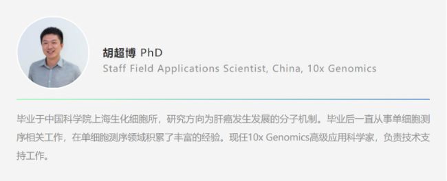 | 16:50-17:20 | 10x Genomics 空間多組學(xué)解決方案最新研究進(jìn)展 | 胡超博 高級(jí)應(yīng)用科學(xué)家 10x Genomics |