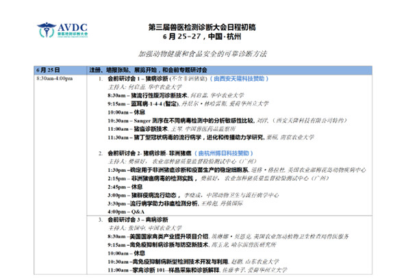 第三屆國(guó)際獸醫(yī)檢測(cè)診斷大會(huì)日程正式發(fā)布!