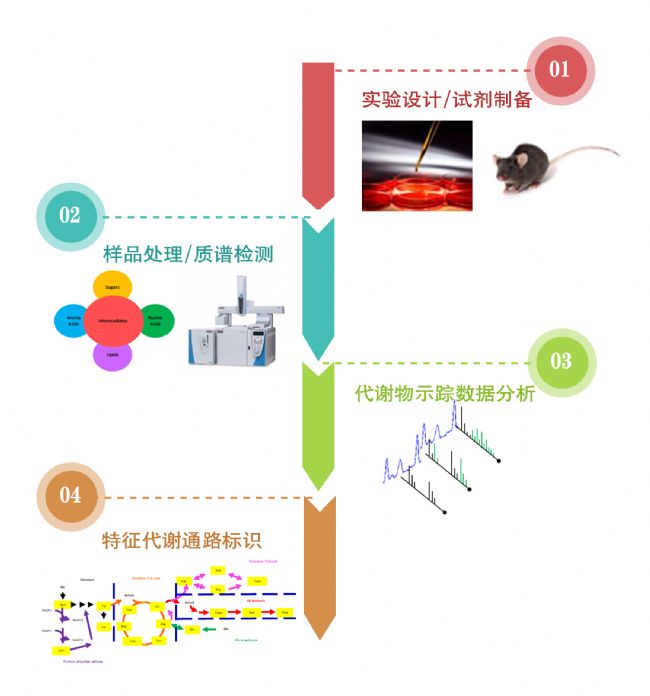 隨著色譜質(zhì)譜技術(shù)的發(fā)展,借助代謝組學(xué)技術(shù)能夠定性和定量描述生物體的靜態(tài)結(jié)果,同位素示蹤代謝流技術(shù)更能靈敏捕捉生物體的動態(tài)過程,兩者優(yōu)勢互補(bǔ)共同詮釋生物體的代謝表型和潛在機(jī)制。代謝流分析(Metabolic Flux Analysis, MFA)技術(shù)利用穩(wěn)定同位素標(biāo)記特定的代謝物,通過分析下游代謝產(chǎn)物的穩(wěn)定同位素標(biāo)記代謝譜,推算出該代謝物在生物體內(nèi)代謝通路中的周轉(zhuǎn)速率、代謝方向和分布規(guī)律,并在動態(tài)水平上描述生物體的代謝活性,從而挖掘主要代謝異常通路及其生物學(xué)功能,揭示其上下游相互調(diào)控機(jī)制,為探索疾病發(fā)生機(jī)制、藥物靶點(diǎn)發(fā)現(xiàn)與確證等提供強(qiáng)有力的科學(xué)依據(jù)。