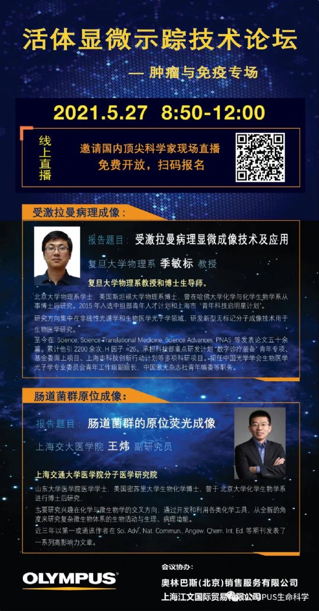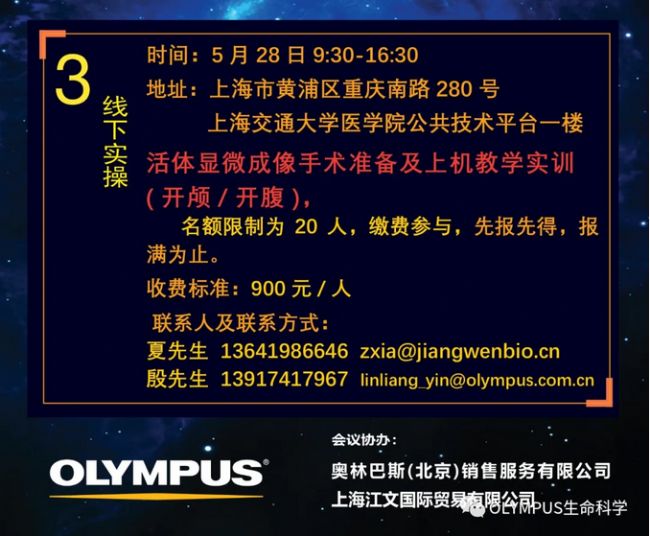 為了幫助腫瘤與免疫研究領(lǐng)域內(nèi)的科研人員進(jìn)一步熟悉并運(yùn)用高分辨率活體顯微示蹤技術(shù),Olympus與上海江文國際貿(mào)易有限公司攜手上海交通大學(xué)醫(yī)學(xué)院公共技術(shù)平臺,共同舉辦活體顯微示蹤技術(shù)論壇 – 腫瘤與免疫專場,誠邀您的參加。