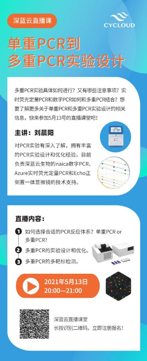 想要了解更多關(guān)于單重PCR和多重PCR實(shí)驗(yàn)設(shè)計(jì)的相關(guān)信息,快來(lái)參加5月13號(hào)的直播課堂吧!