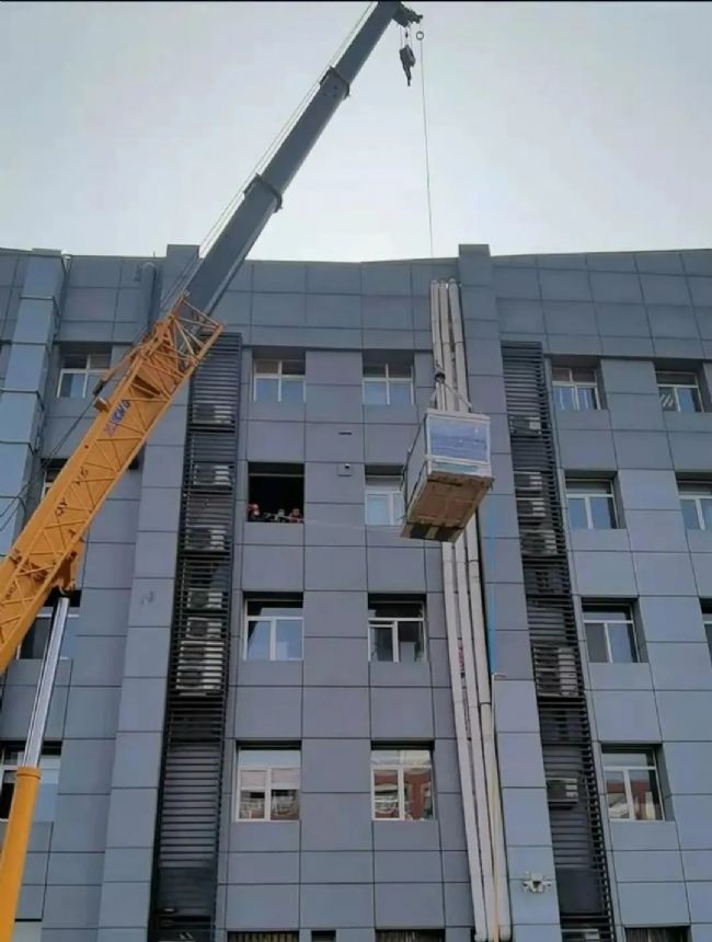 百濟(jì)化合物存儲(chǔ)區(qū)位于大樓4層,由于大樓先天設(shè)計(jì)的原因,comPOUND無(wú)法通過(guò)常規(guī)的大門(mén)和貨梯進(jìn)行入戶安裝。這給我們的售后團(tuán)隊(duì)提出了極大挑戰(zhàn)。騰泉售后團(tuán)隊(duì)為滿足客戶使用需求,保證按時(shí)交貨。在實(shí)地考察大樓的各項(xiàng)參數(shù)后,與客戶不斷溝通得出唯一可行實(shí)施方案:通過(guò)大樓外立面窗戶吊裝進(jìn)入。