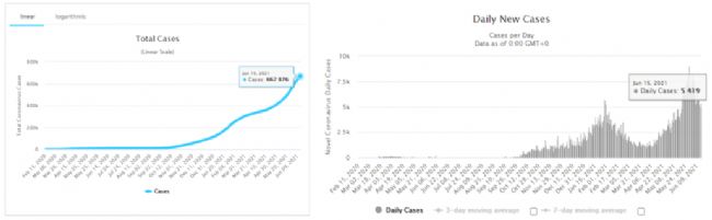 自5月以來,馬來西亞疫情一度迅速升溫。根據(jù)Worldometers官網(wǎng)數(shù)據(jù)顯示,截止2021年6月15日,馬來西亞累計確診病例達667876例,單日新增確診病例達5419例。2021年6月1日,馬來西亞政府正式實施國內(nèi)全面封鎖,預(yù)計截止時間為6月28日。