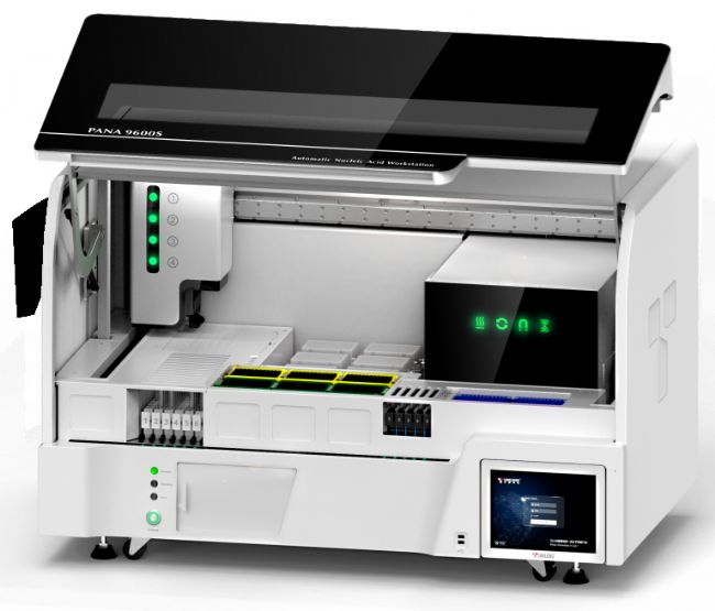 PANA9600S全自動核酸工作站由天隆科技自主研發(fā)生產(chǎn),70分鐘內(nèi)即可完成96個樣本的信息掃描、樣本加載、核酸提取、PCR體系構(gòu)建等功能,并具有紫外消毒、空氣過濾、實驗分區(qū)、液滴捕獲等多重防污染措施。PANA9600S超高的工作效率和樣本處理能力不僅可以滿足大批量應(yīng)急檢測需求,更能全方位保障人員安全。