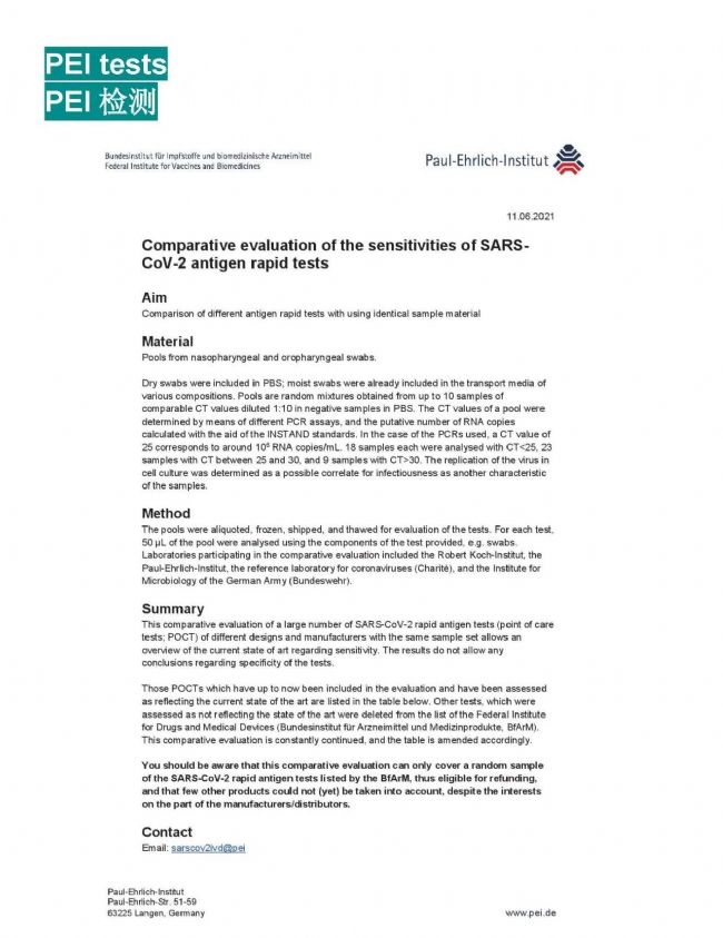 百泰克抗原檢測卡通過歐洲含金量最高的測試---德國PEI測試!