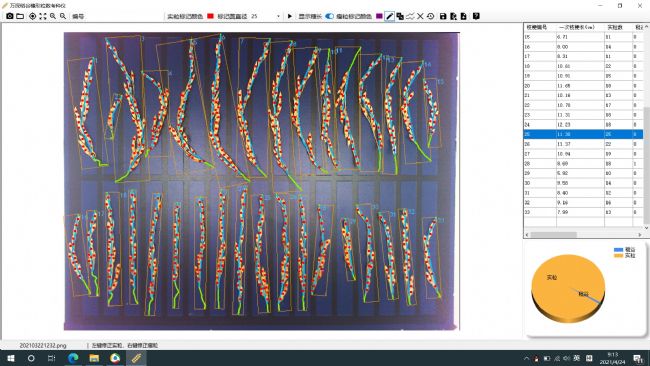 萬深SC-S型稻谷穗形粒數(shù)考種儀可以一鍵化自動分析稻谷大穗中各小穗粒數(shù)、一次枝梗長、著粒密度及各平均值等,按分枝序列來定位自動分析最多34個(gè)一次枝梗長、對應(yīng)穗粒數(shù)、枝梗著粒密度及各平均值的總耗時(shí)<20秒,鼠標(biāo)點(diǎn)擊確定對應(yīng)枝梗上的秕谷粒后,自動算出各枝梗結(jié)實(shí)率及總結(jié)實(shí)率,自動數(shù)粒誤差<±2.0%,極少量添加、刪除修正,可達(dá)100%正確,枝梗長可編輯。