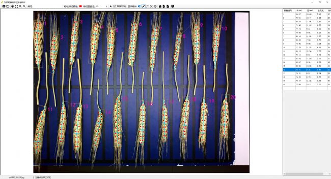萬深SC-T型小麥穗形粒數(shù)考種儀可以按分枝序列來定位一鍵化自動分析20個(gè)小麥穗的各穗粒數(shù)、穗長穗寬、及各穗平均值等,自動數(shù)粒誤差<±2.0%,極少量添加、刪除修正,可達(dá)100%正確,麥子穗長穗寬尺寸可編輯,自動分析20個(gè)小麥穗各項(xiàng)參數(shù)的總耗時(shí)<20秒。