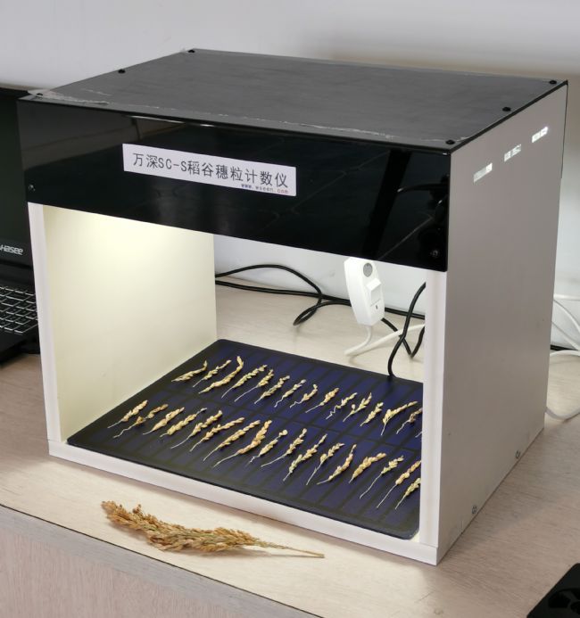 萬深的SC-S型稻谷穗形粒數(shù)考種儀和SC-T型小麥穗形粒數(shù)考種儀,均由800萬像素自動對焦拍攝箱體、智能化稻穗分枝數(shù)粒測長分析軟件、或智能化小麥穗形粒數(shù)測長考種分析軟件、穗子放置與尺寸標(biāo)定板等組成。是免培訓(xùn)的傻瓜式分析儀,其專用于水稻快速測產(chǎn)與育種考種,以及灌漿成形后到半成熟期的小麥快速測產(chǎn)與育種考種,可大幅度提高測產(chǎn)考種工作效率。