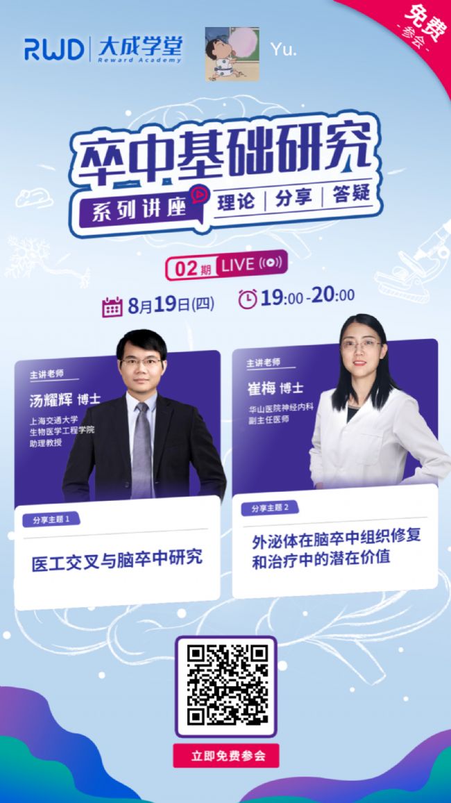 今天,卒中基礎(chǔ)研究系列講座第二期報(bào)名開始,進(jìn)一步助你擺脫聽不懂、不會(huì)實(shí)操的困境。兩位講師繼續(xù)全方位為你賦能,擴(kuò)展卒中研究視野,快速提升專業(yè)技能