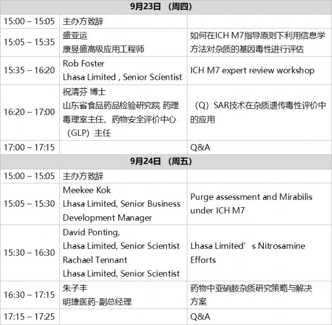 由于新冠疫情的持續(xù)影響,由康昱盛和Lhasa Limited公司聯(lián)合舉辦的“2021 ICH M7指導(dǎo)原則下的雜質(zhì)基因毒性軟件評(píng)估研討會(huì)——暨Lhasa中國(guó)第三屆用戶會(huì)”將于9月23-24日通過(guò)網(wǎng)絡(luò)在線方式舉辦。