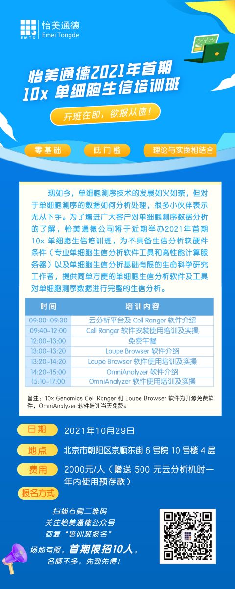 怡美通德邀您參加2021年首期10x單細胞生信培訓班