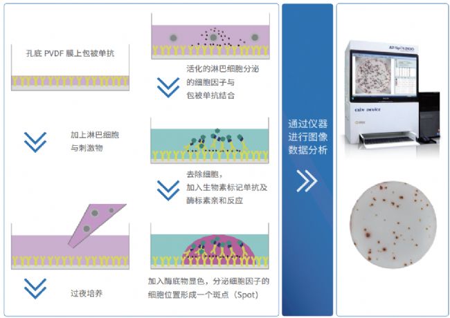 圖2. ELISPOT的實(shí)驗(yàn)原理和流程。